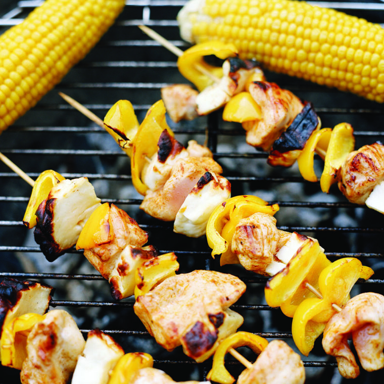 Grilled Chicken Kebabs with Grilled Corn on the Cob