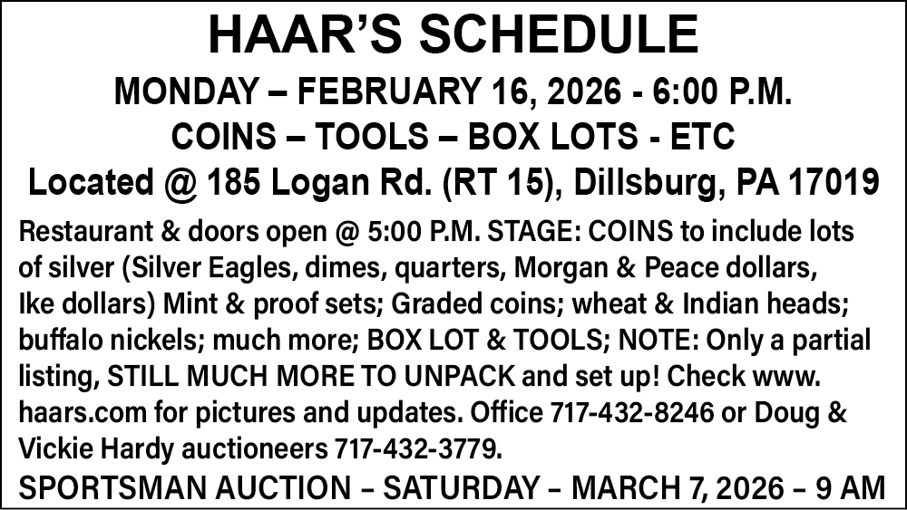 Our Auctions page is updated each week and features real estate auctions, consignment auctions, public auctions, online auctions, and much more in Chambersburg, PA & Hagerstown, MD plus surrounding areas.